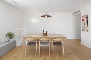 העיצוב הנורדי-סקנדינבי הוא מינימליסטי ופונקציונאלי. התאורה העדינה והמפוזרת תוסיף אווירה חמימה ומזמינה לפינת האוכל.